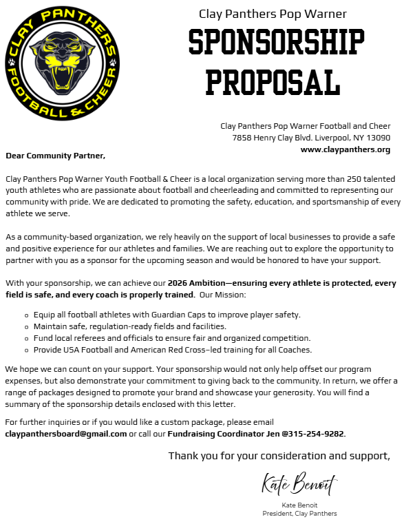 Clay Panthers Football and Cheerleading PO Box 2504 Liverpool, New York 13089