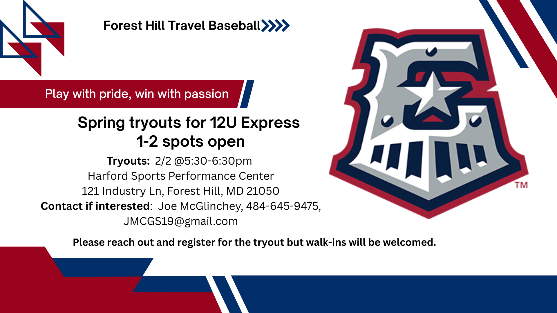 Spring Baseball and Softball Registration for Forest Hill IS OPEN at the following links. Click on the appropriate link, create a TeamSnap account, enter your players' information and register them on-line, pay with a credit card.