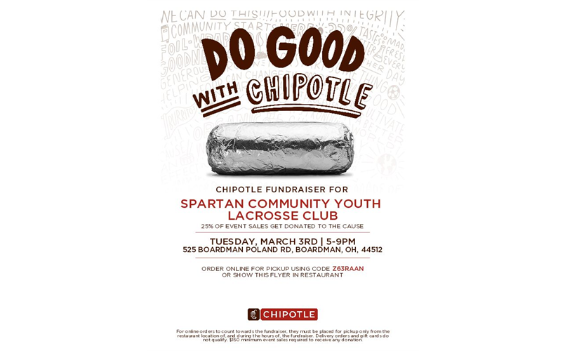 Order dinner for the family while supporting Spartan Community Youth Lacrosse! Remember to show the flyer in store or enter the code when ordering online. Thank you for your support!!!