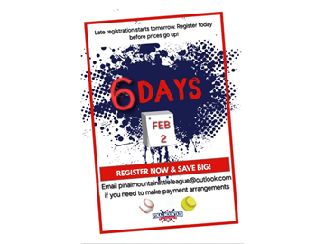 Late registration $60 starts tomorrow and goes until Feb 2, 2024. Need to make payment arrangements reach out to us on Facebook or at