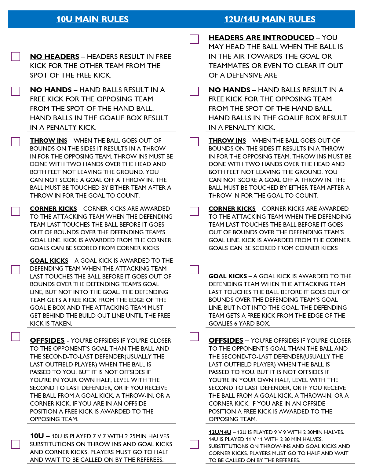 specific rules governing the various game formats, ranging from the smaller 4 v 4