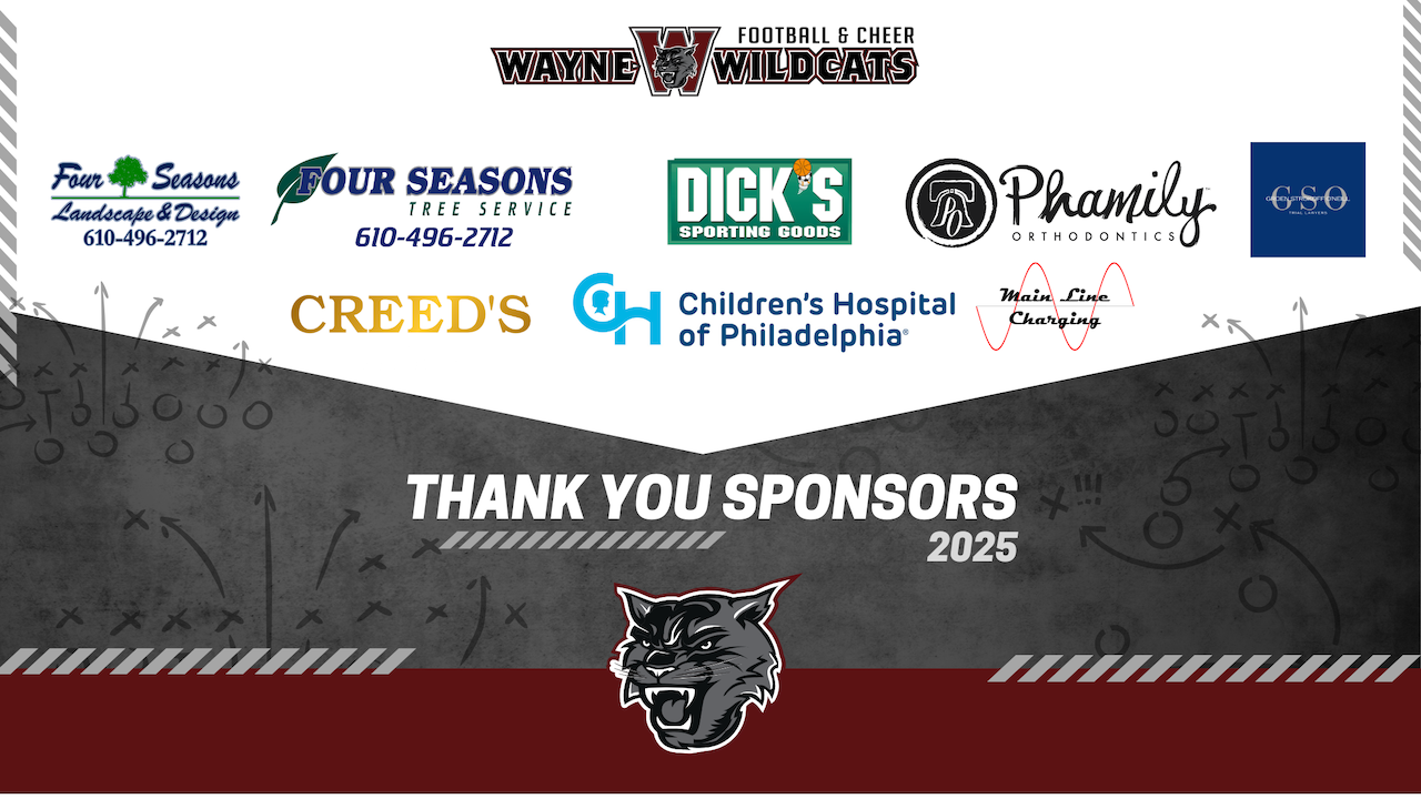 We're currently seeking 2025 Wildcat sponsors whose support will help us purchase much-needed new equipment and uniforms, as well as secure our location for games and cheer practice. This exclusive sponsorship will have the privilege of having their logo proximately displayed on the new scoreboard wrap!