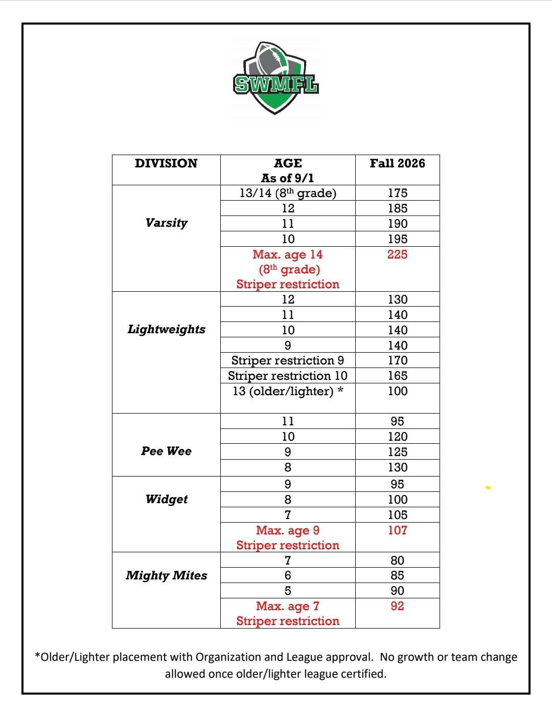 We are proud members of the Southwest Midget Football League, a premier league that since 1965 has inspired youth