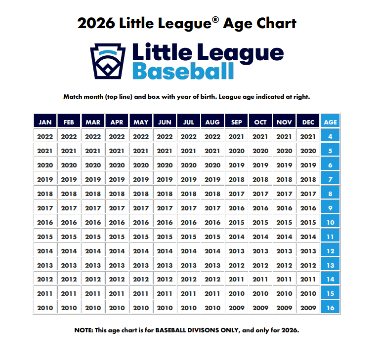 Player age will go by however old they are on August 31, 2026. Please see the 2026 age chart at the bottom of this page if you have more questions!