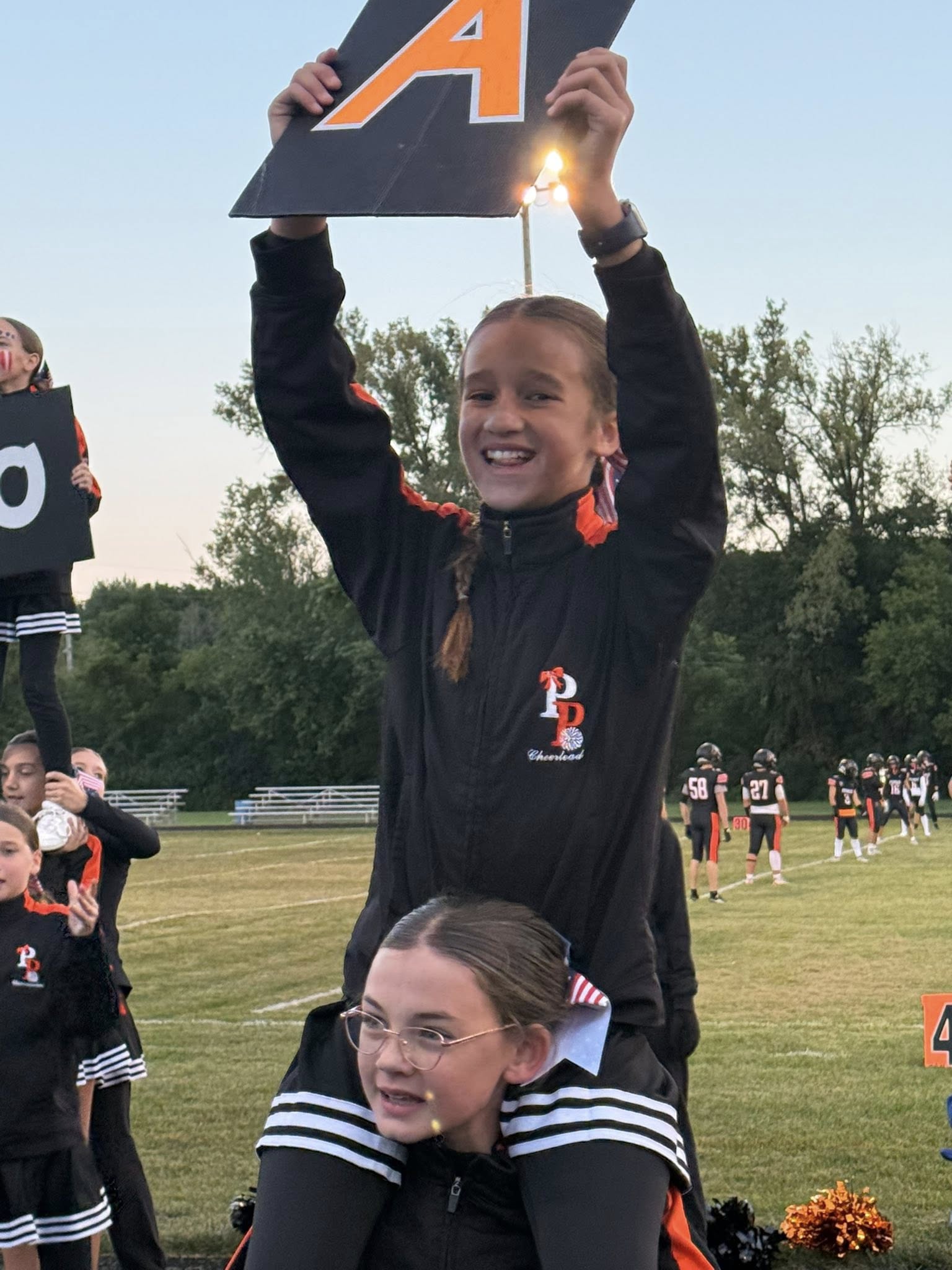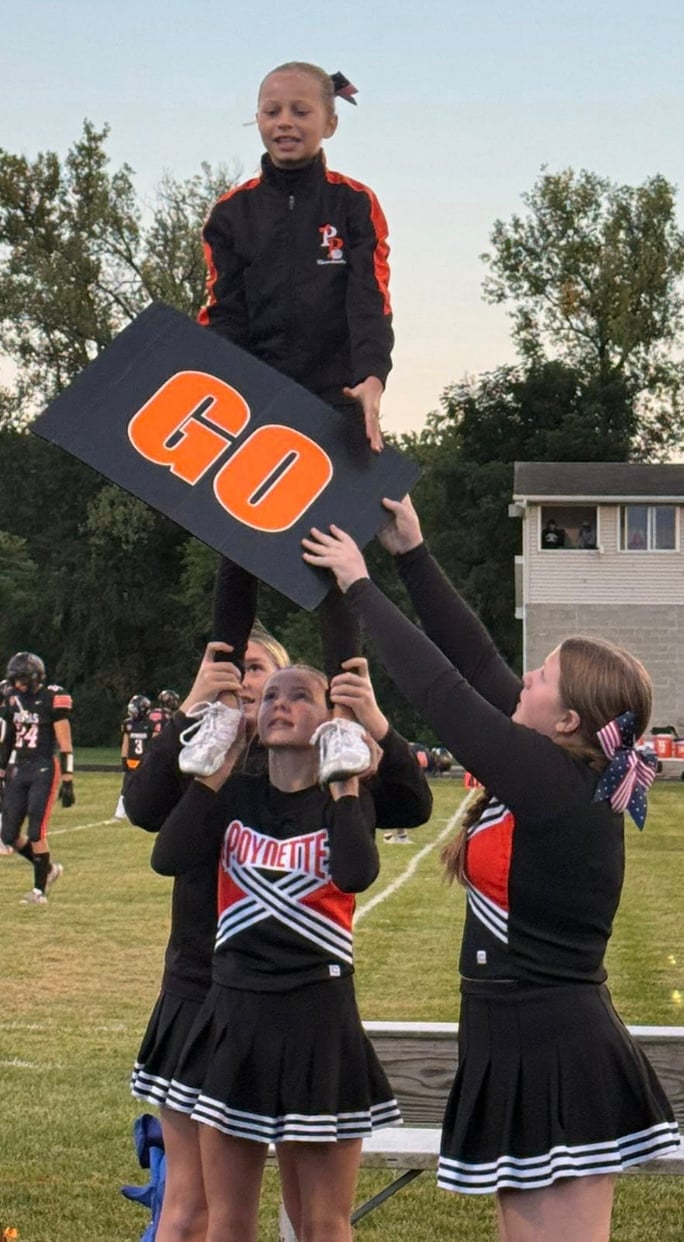 Our Middle School Sideline Cheer team is the perfect opportunity for athletes in 5th-8th grade to build school spirit, develop cheer skills, and grow as leaders! They learn cheers, work on more elite stunts and have the opportunity to work with our Mini Panthers. This team cheers at 7/8th grade tackle home football games cheering on our future Puma football players. Our middle school team is a great way for your athlete to stay active, make new friends, be apart of the Poynette community and prepare for high school cheer.