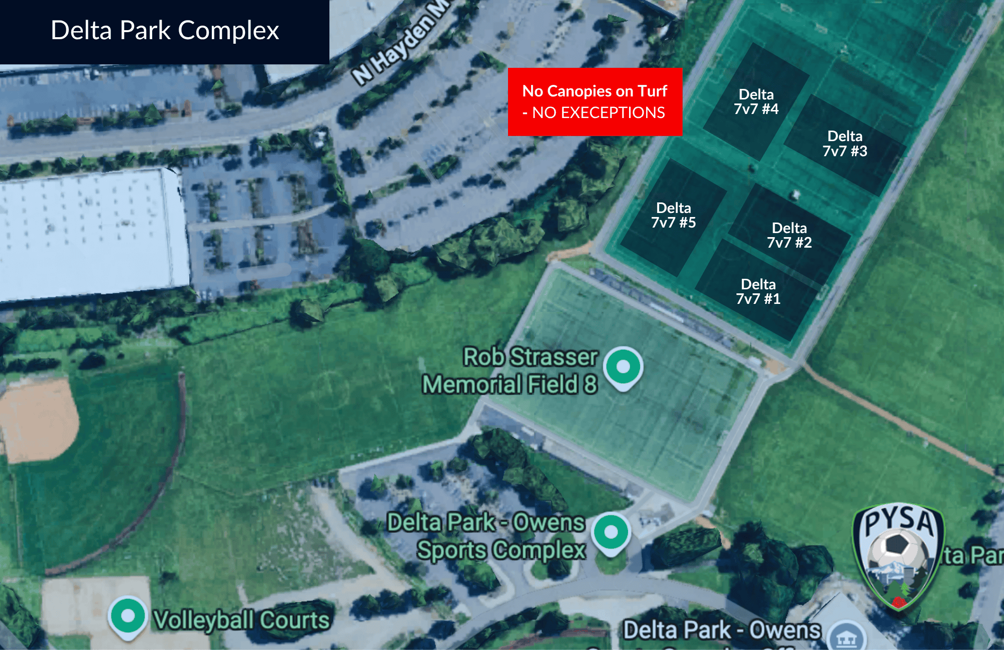 NO TENTS OR CANOPIES CAN BE PLACED ON ANY ARTIFICIAL TURF SURFACE Trophies will be awarded to the 1st and 2nd place coaches, with medals provided to players of the 1st and 2nd place teams.