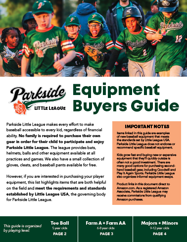 However, if you are interested in purchasing your player equipment, this buyer's guide highlights items that are both helpful on the field and meet the requirements and standards established by Little League USA, the governing body for Parkside Little League.