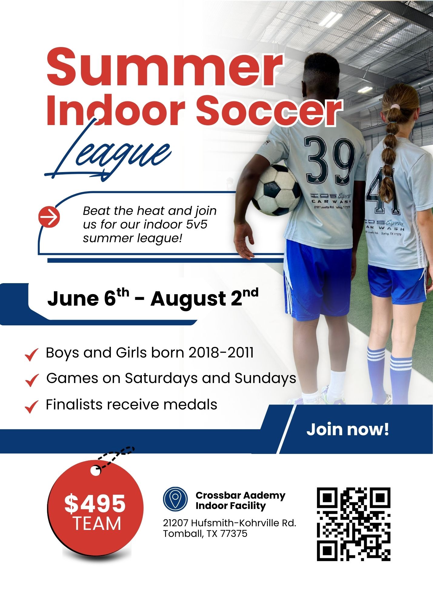 Crossbar's Youth Indoor Soccer League delivers high-energy, skill-focused competition for all players. With 5v5 indoor games on turf, the league promotes quick decision-making, ball mastery, and teamwork in a fun, competitive environment.