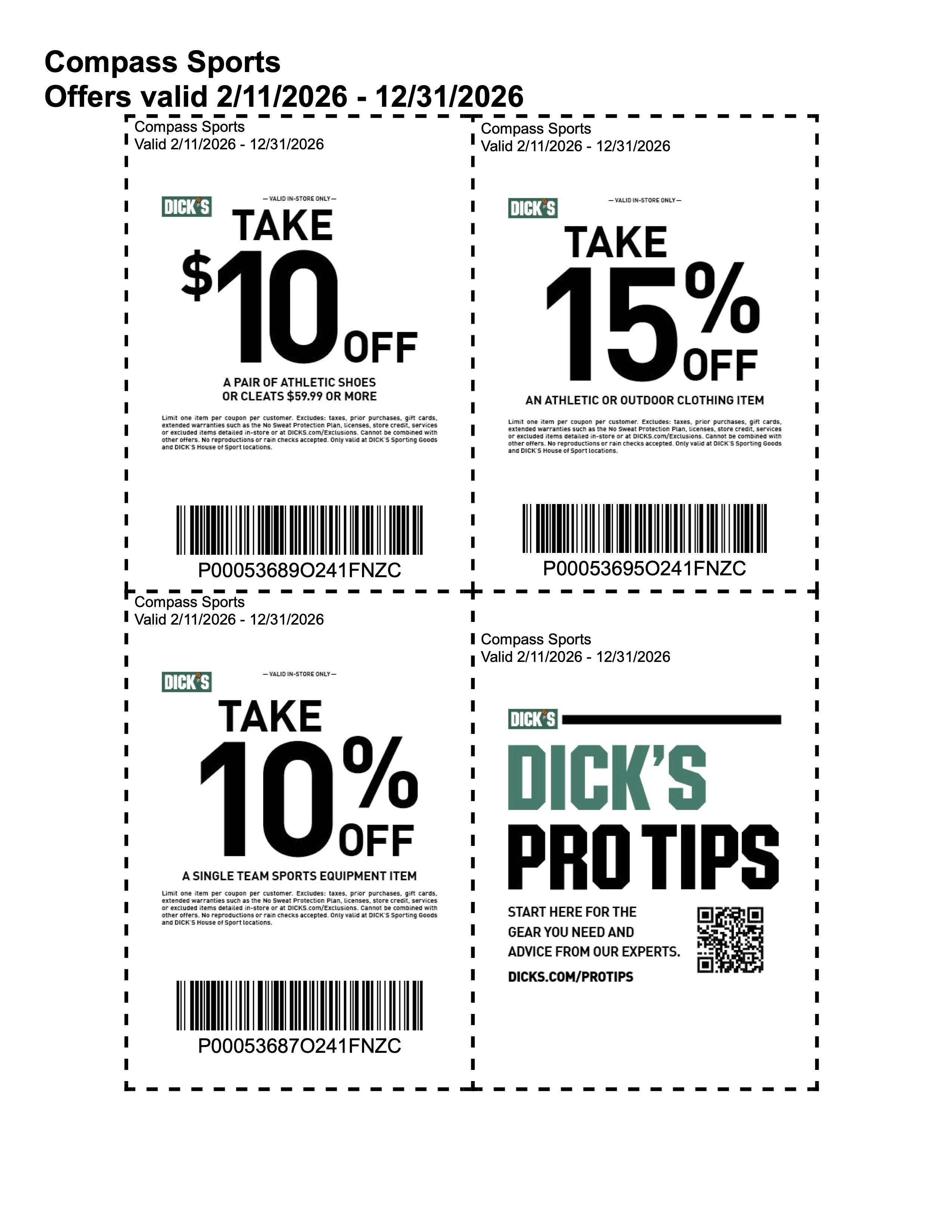 Thanks to DICK's Sporting Goods for their continued support of Compass Sports!