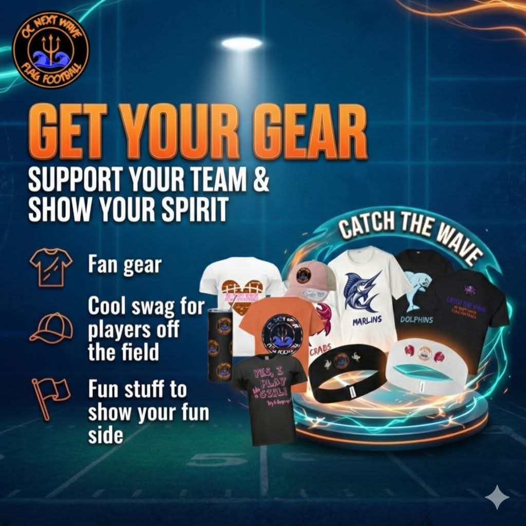 Click here for the cool swag for all your flag football fun!Click here for the Team Swag Store for all teams in OC Next Wave Spring LeagueClick here for the OC Next Wave Gear swag store!
