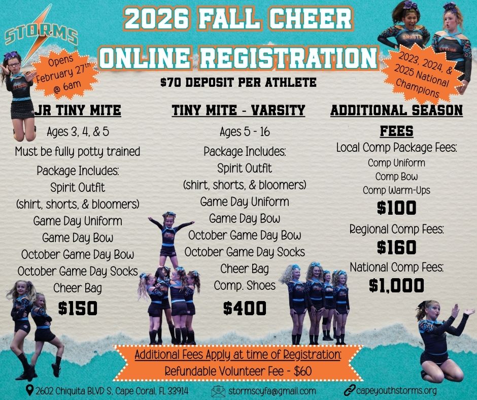 https://www.zeffy.com/en-US/ticketing/cyfa-cheer-clinic-registration-form**If you have already registered your child for Fall you do not have to register for the Cheer Clinics. They are included in the cost of registration.