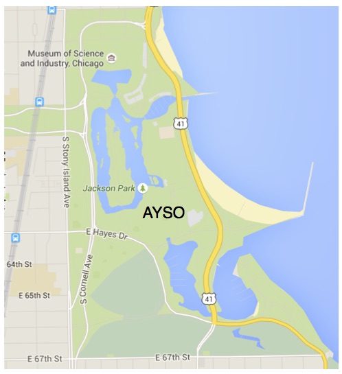 Our Game Day matches are played in the historic Jackson Park. We have set up fields on the section of the park at 63rd Street/Hayes Drive and Lake Shore Drive. This is just past the Museum of Science and Industry, also near the Park District Golf Driving Range.