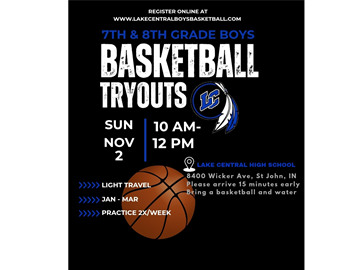 Tryouts for the Lake Central Boys Basketball Club will be held on Sunday, November 2nd at Lake Central High School.