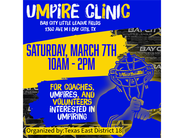 The Little League Texas East District 18 has planned umpire clinics for coaches, new and returning umpires, and those looking to better understand the game.