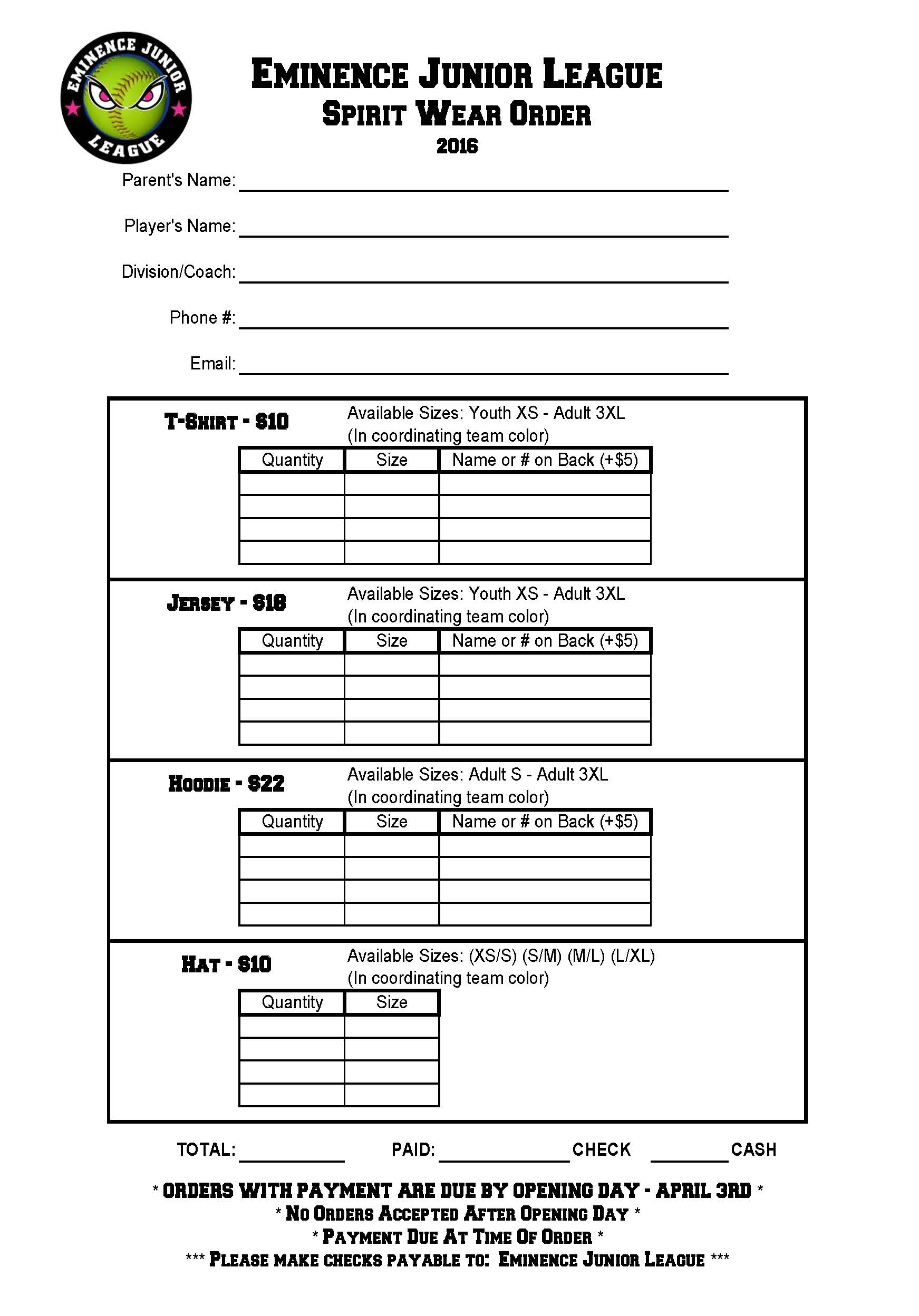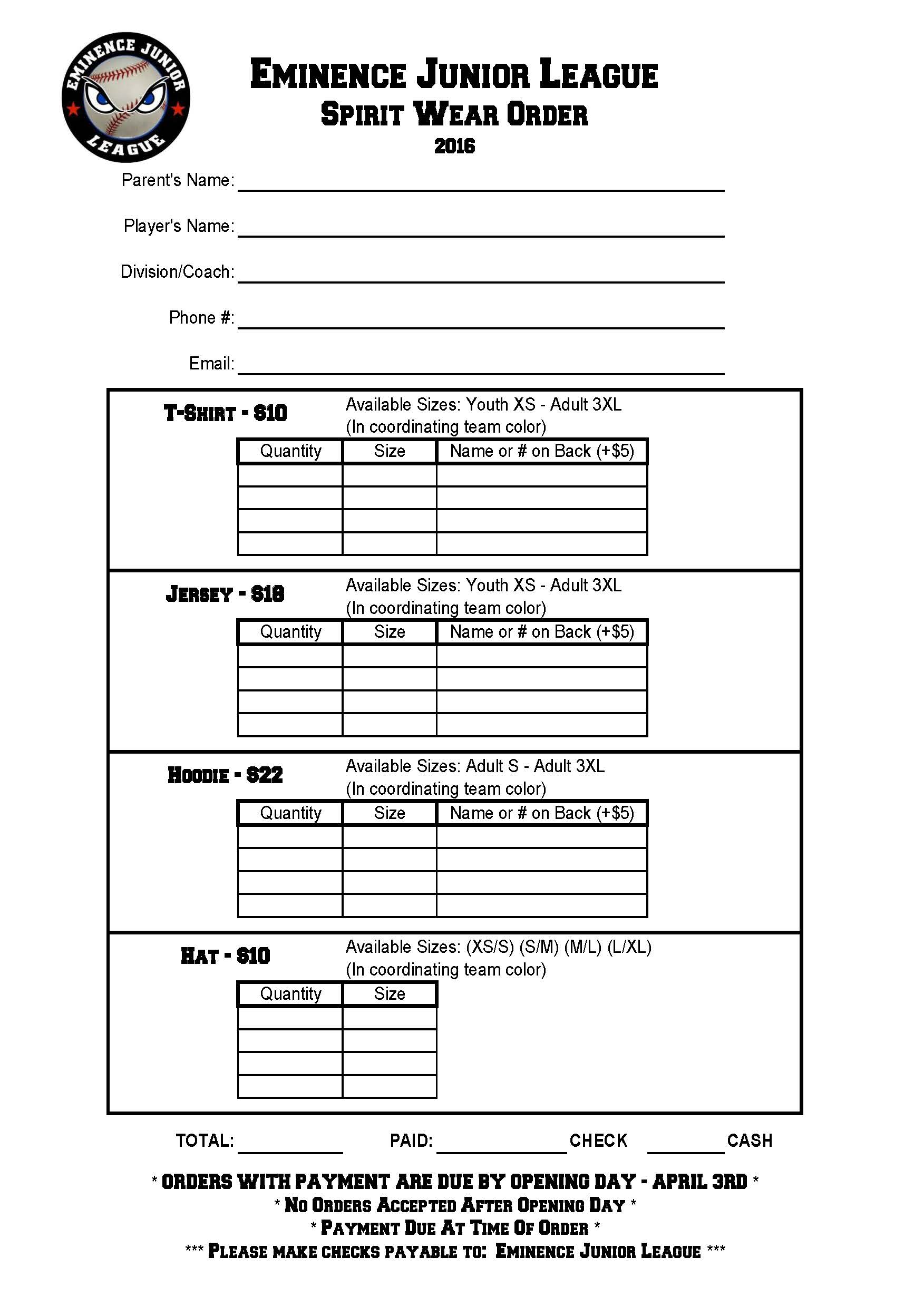 PLEASE MAKE ALL CHECKS PAYABLE TO: Eminence Junior League