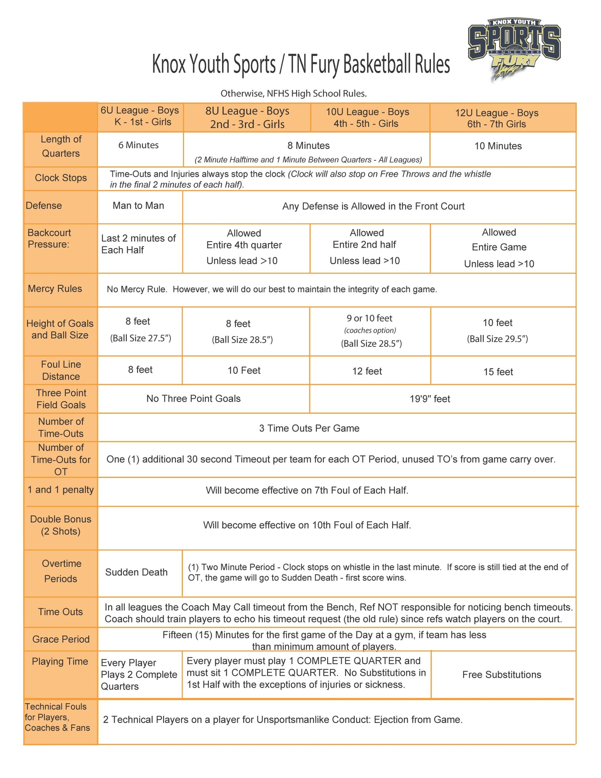 Practices and games take place at several gyms in the West Knoxville/Bearden area.