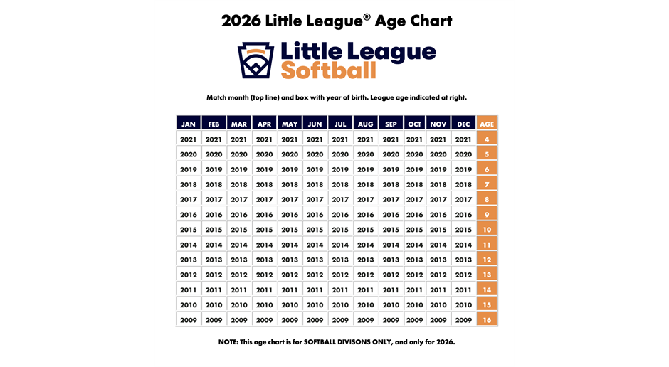 The Age Determination Date for a Little League Softball player is the actual age of a child on December 31 of the previous year.