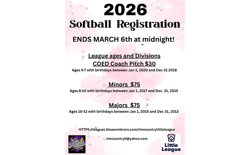 Player assessments will be held March 7, 2026 starting at 10am.