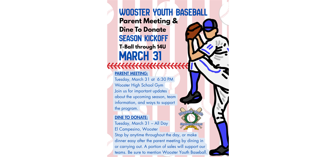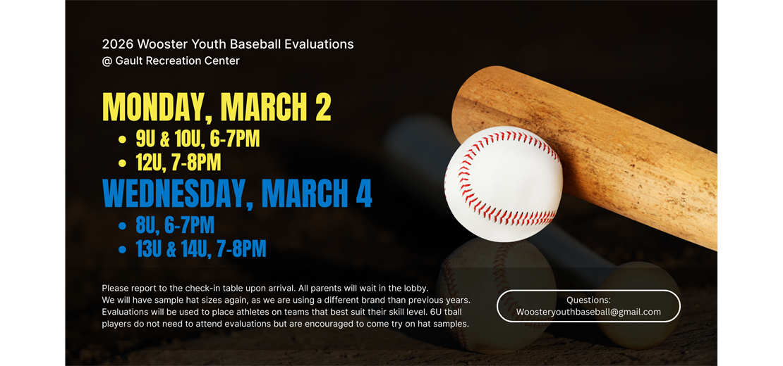 Wooster is hosting the Ralph Jones Memorial Tournament at Miller Fields from July 24-26. This is open to all 10U and 8U Community All-Star teams! Kona Shaved Ice will be on-site!